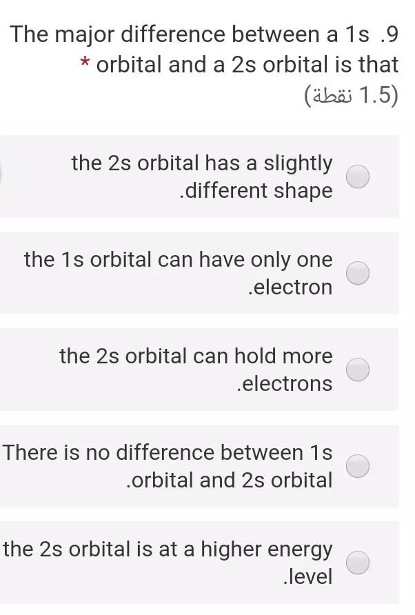 1s orbital has the lowest energy because it is located closed to the nucleus. Weve got the study and writing resources you need for your assignments. Choose all that apply The 1s orbital has a different value for the l quantum number.